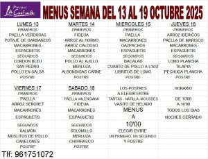 MENUS 13 AL 19 OCTUBRE