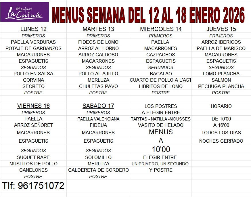 MENUS SEMANA 12 AL 18 ENERO 2026